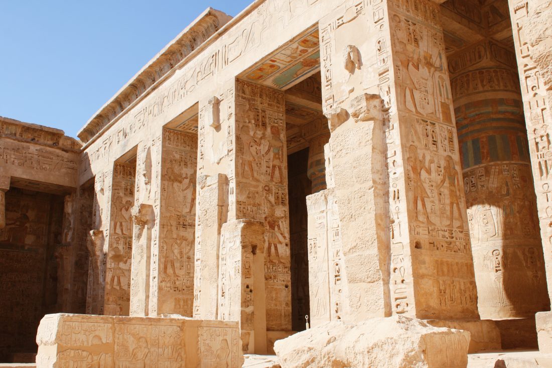Medinet Habu es un conjunto arqueológico, cercano al Valle de los Reyes y al templo de Hatshepsut. Es un recinto articulado en torno al templo funerario de Ramsés III, uno de los faraones más importantes de la dinastía XX.